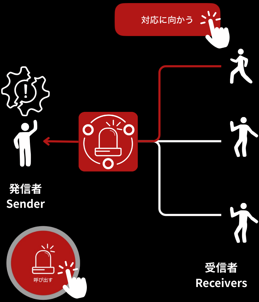 もっと 手軽に 呼び出したいときに いますぐAlertHubアプリをダウンロード だれかを呼び出したり、呼び出された際の応答や他人の状況の共有をリアルタイムで行えるアプリ 呼び出し後の状態を6種類に分類してリアルタイム共有 呼び出し中 対応中 呼出後に解決済み 全員対応不可 呼び出したが応答なし 発信側で呼出取消済み Watch用アプリではPUSH通知のアクションボタンからすぐに応答可能 1つのアカウントで複数デバイスにログイン可能 チームの連携力を高める、コミュニケーション強化機能 — 役割に応じた使いやすさで、コミュニケーションをもっとスムーズに! 発信者向け機能 グループ作成 他ユーザーのグループへの追加 呼び出し 呼び出しの取消 解決済みへの状態更新 呼び出し履歴の確認 各種設定変更等 その他 受信者向け機能 呼び出し履歴の確認 呼び出しへの応答 上記応答の取消 その他 カンタン操作で、すぐにスタート! STEP - 1 登録してログイン!発信者?受信者?役割を選ぼう! STEP - 2 グループを作成し、他のユーザを招待しよう! STEP - 3 すぐに呼び出す、すぐに対応に向かう! 詳しい使い方はこちら! 料金プラン ベーシック ¥0 最大3グループに参加可能 再通知なし 呼び出しのタイムアウトは10分固定 1日最大3回まで呼び出し可能 プレミアム ¥500/月 最大10グループに参加可能 再通知なし 呼び出しのタイムアウトを 5分~15分で編集可能 1日最大10回まで呼び出し可能 詳細情報 プロ ¥1000/月 最大50グループに参加可能 再通知は30秒以上で自由に設定可能 呼び出しのタイムアウトは10秒~30分で自由に設定可能 1日の呼び出し制限なし 詳細情報 専用カスタマイズ可能 ご希望があれば専用設計の検討をしますのでまずはお気軽にご相談ください。 相談する お問い合わせ このフォームに入力するには、ブラウザーで JavaScript を有効にしてください。このフォームに入力するには、ブラウザーで JavaScript を有効にしてください。名前 *名姓メールアドレス *問い合わせ内容 *-- 選択 --機能使い方プランその他 メールアドレス 問い合わせ内容 名前 詳細送信する